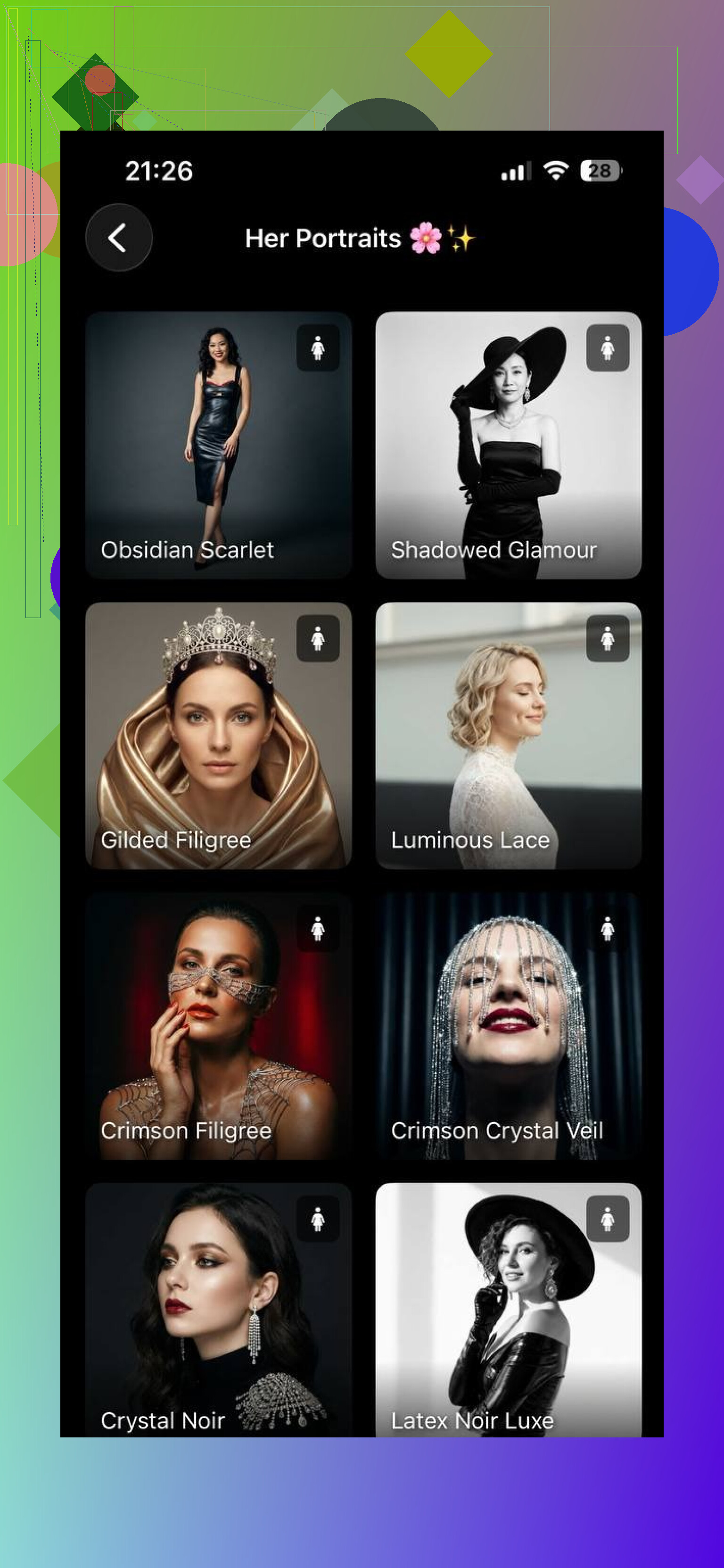 I uploaded 1 to 3 simple selfies. Straight-on, natural expression, no strong filters. The app built a face model from those, then I generated multiple portraits from the Her Portraits and Studio options.