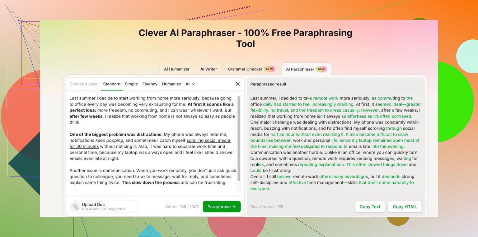 So yes, Clever Ai Humanizer helps, but your input and editing habits matter more than the tool. If you treat any paraphraser as a first draft helper and not the final voice, your stuff feels much more human.