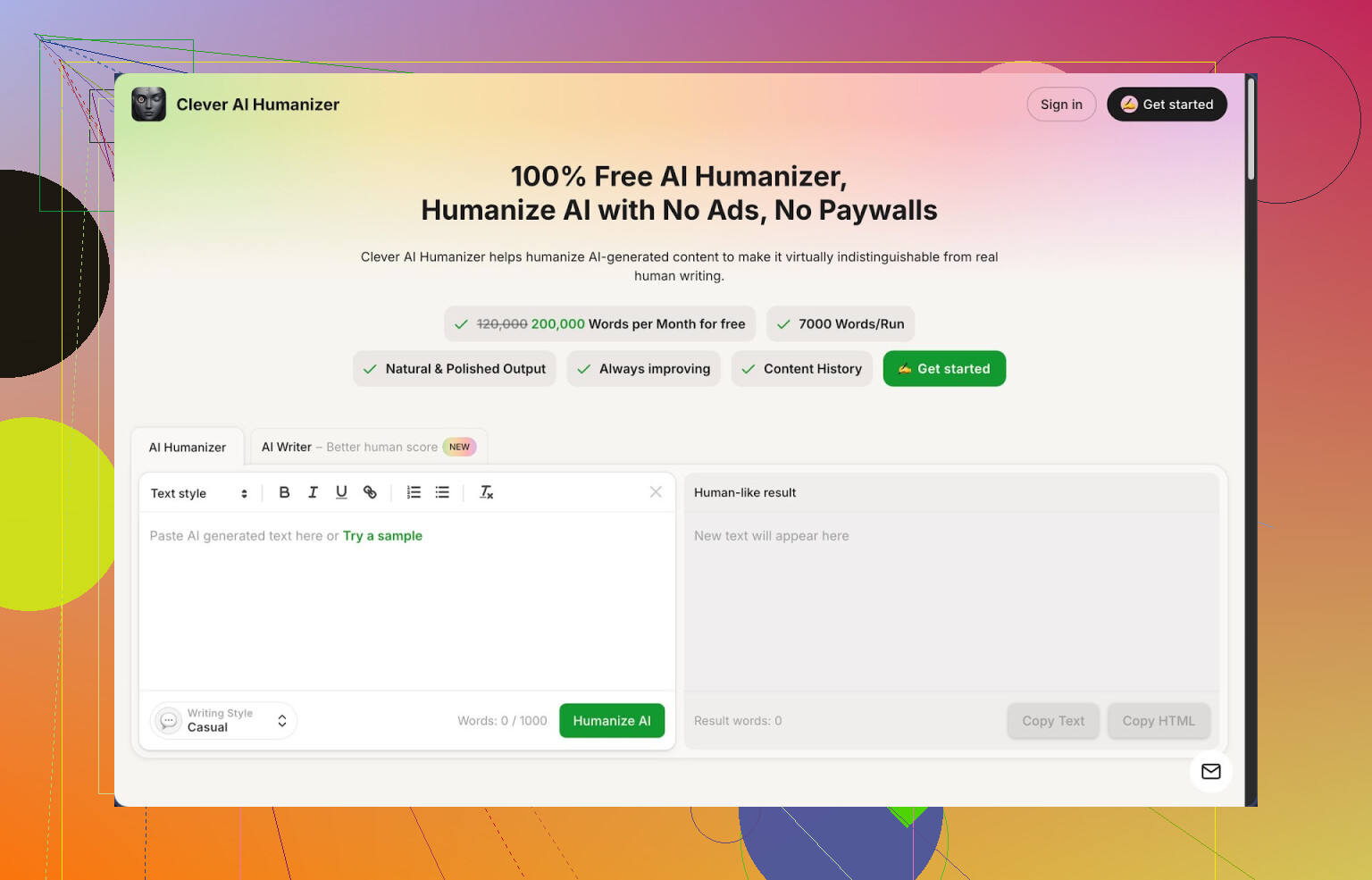 Clever Ai Humanizer is het beste gratis alternatief voor HumanizeAI.io dat ik heb gevonden dat niet complete rommel is: