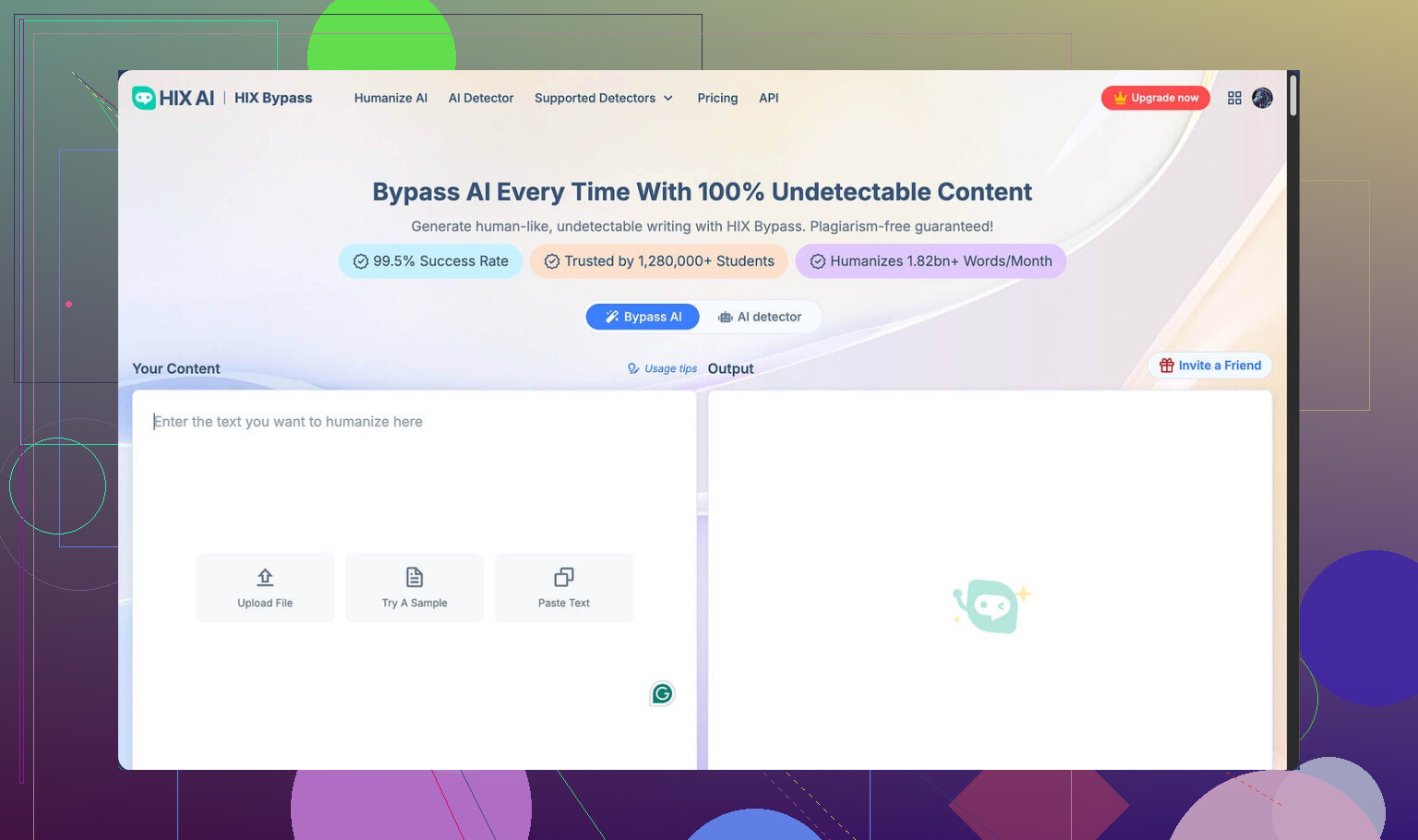 I tried HIX Bypass because the homepage hits you with a huge “99.5% success rate” claim and a row of big-name logos like Harvard, Columbia, and Shopify. All the usual trust-bait.