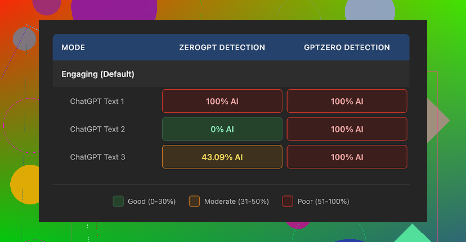 The inconsistent scores from ZeroGPT and the total failure on GPTZero made it pretty hard to trust this tool as a serious “make this text pass for human” solution.